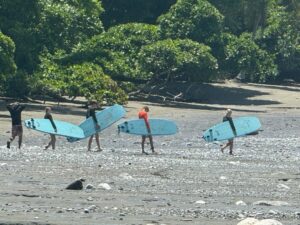 At various times, the waves on Carate beach are large enough for surfing, but it is not considered a beginner’s beach because of the currents. If you are really looking for the best surfing in the southern zone, Pavones, on the other side of the Gulf of Dulce, where the Gulf opens into the Pacific Ocean, is world famous for it’s left hand break–the second longest in the world.